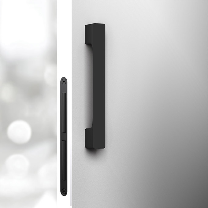 K magnetickému systému jsme navrhli inovativní úchopná madla, připravená pro jednoduché, ale účinné ovládání dveří. Součástí některých modelů je i integrované zamykání WC/koupelna, což přináší dosud nepoznaný dojem.